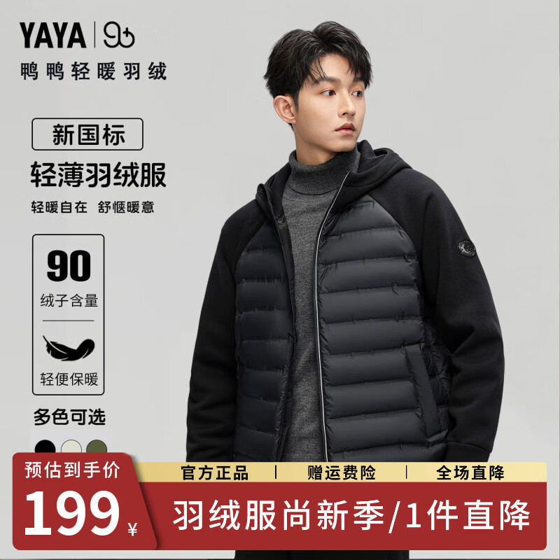 鸭鸭针织拼接羽绒服男2025秋冬季新款连帽外套轻薄款休闲时尚潮流上衣