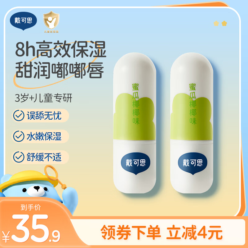 戴·可·思儿童元气唇膏宝宝润唇膏保湿滋润男孩女童小女孩3岁+专用护唇膏 【拍1发2】蜜瓜椰椰味唇膏3.6g