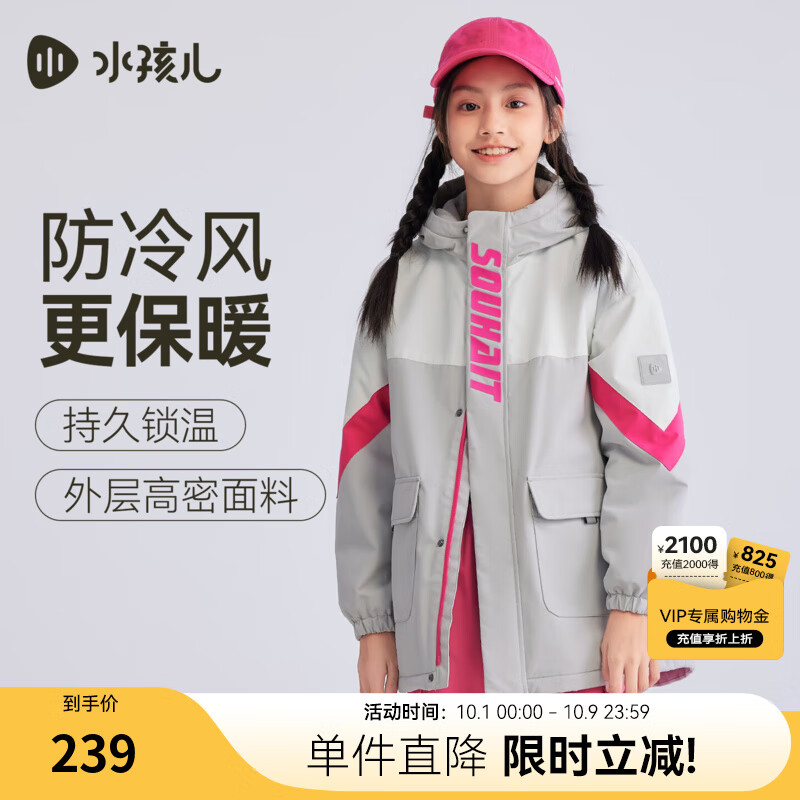 水孩儿(SOUHAIT)童装男童女童摇粒绒外套2025秋冬季新款儿童三防风衣百搭加绒上衣 暮云灰 SHTDND05CC750A13 140