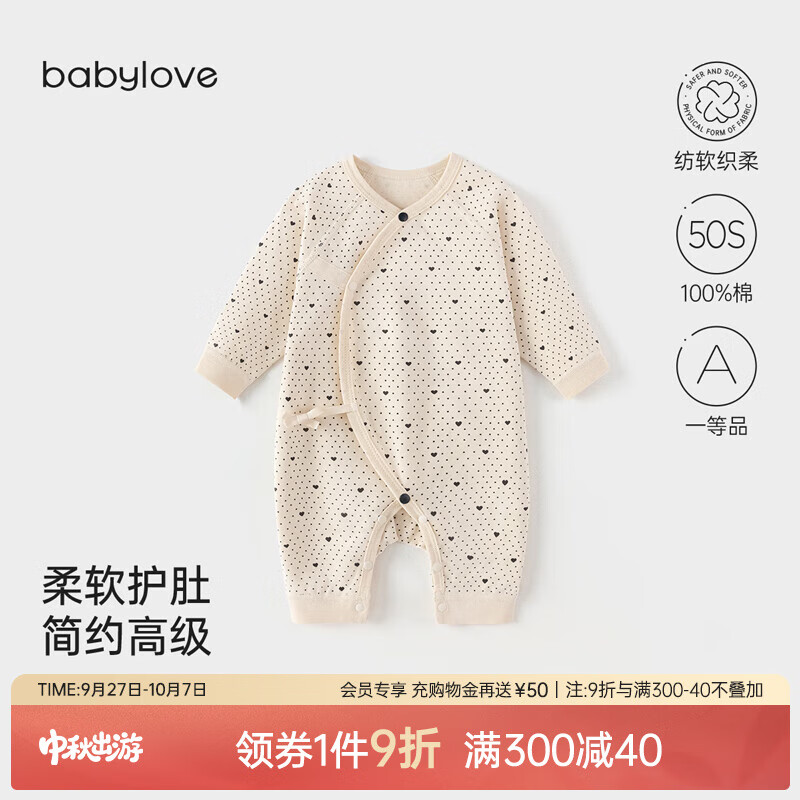 babylove【纺软织柔】新生儿连体衣纯棉系带衣服春季宝宝哈衣爬服婴儿衣服 心心点点 66cm