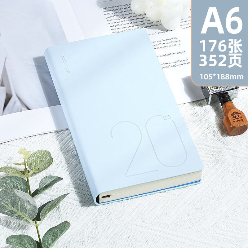 申士(SHEN SHI)【热门商品】2026年A6莫兰迪色日程本笔记本子352页日期工作效率手册日志记事本可印LOGO B40蓝色