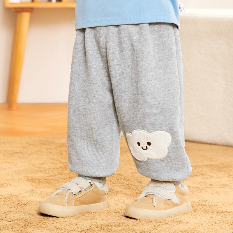 懿琪宝贝男童裤子秋冬婴儿屁屁裤冬装儿童加绒长裤加厚女童大pp裤宝宝童装 灰色 80