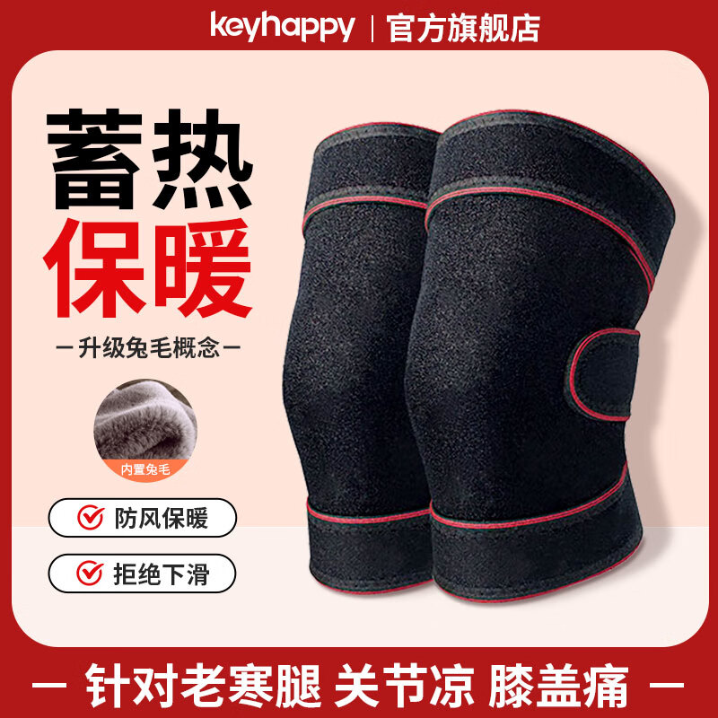 Keyhappy护膝保暖老寒腿关节炎半月板损伤医用男女士专用膝盖防寒挡风 两只装【均码】快至24小时达 兔毛加厚 保暖防滑