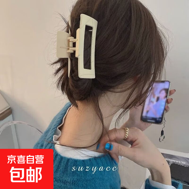 韩国优雅气质磨砂面长方形后脑勺头发夹子发夹简约风抓夹儿童发饰 #1个装:米黄色