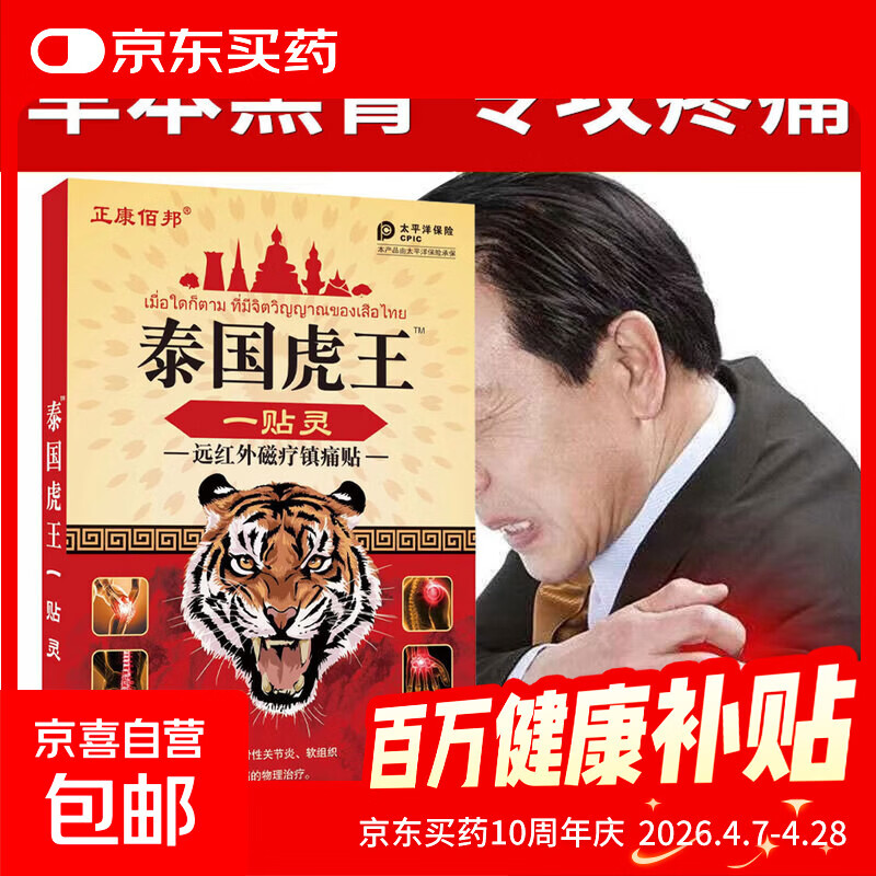 泰国虎王一贴灵关节不适老虎贴膏药贴发热穴位贴 泰国虎王一贴灵8贴/盒