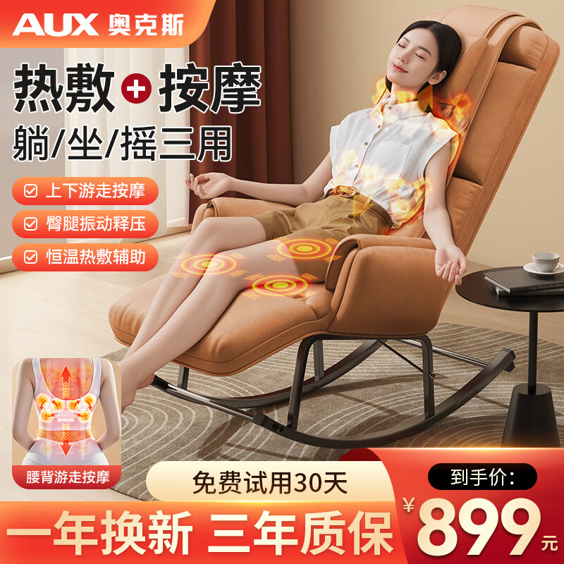 奥克斯(AUX)按摩椅家用全身按摩垫按摩器按摩靠垫全自动揉捏智能沙发按摩椅休闲躺椅送爸妈长辈礼物AQA-LL-B6 【橙色】智能摇摇椅顶配款 送父母长辈领导办公室午休