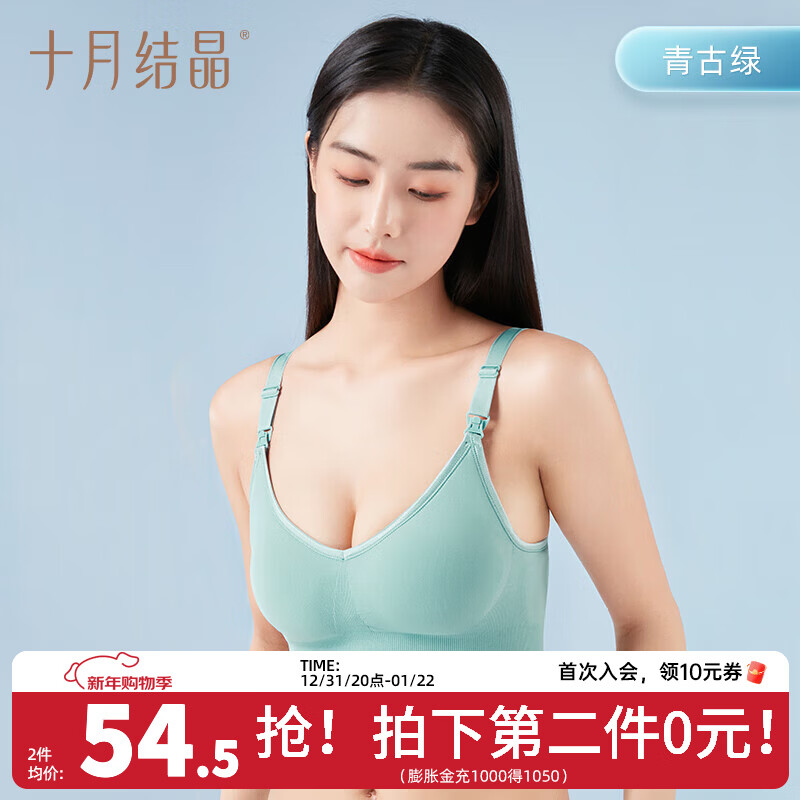 十月结晶哺乳文胸孕妇内衣产前产后喂奶胸罩聚拢 青古绿【经典无缝】 S