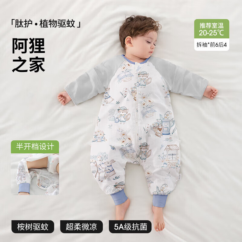 贝肽斯【肽护】婴儿睡袋夏季驱蚊纱布薄款分腿宝宝儿童防踢被 肽护驱蚊【前6后4可拆袖 室温20-25°c】阿狸 M码【适合身高80-95cm】年龄15月-2.5岁
