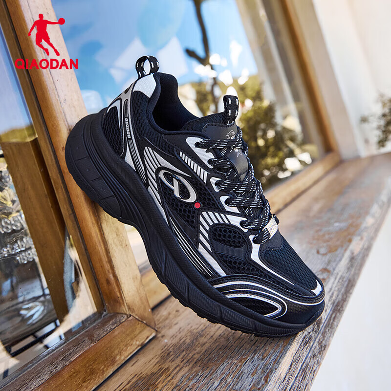 乔丹【79特惠】开元2K运动鞋男2025年夏新款复古老爹鞋休闲软底跑 黑色/银色 42