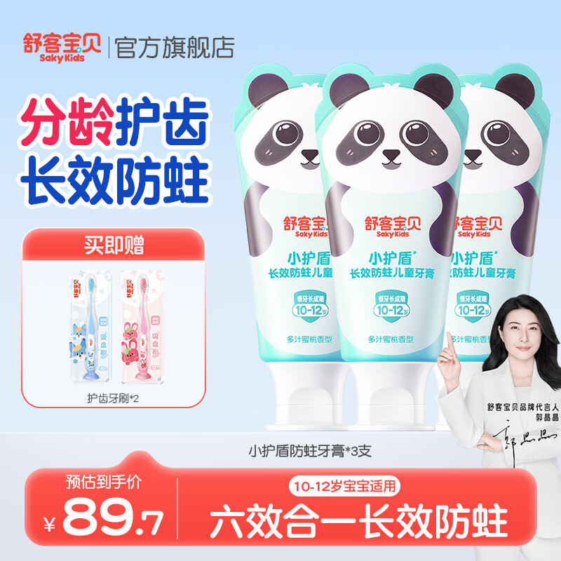 舒客宝贝儿童牙膏小护盾12小时长效防蛀牙克服龋齿3-6-12岁含氟分龄修护 【10-12岁】蜜桃香60g*3+护齿牙刷*2