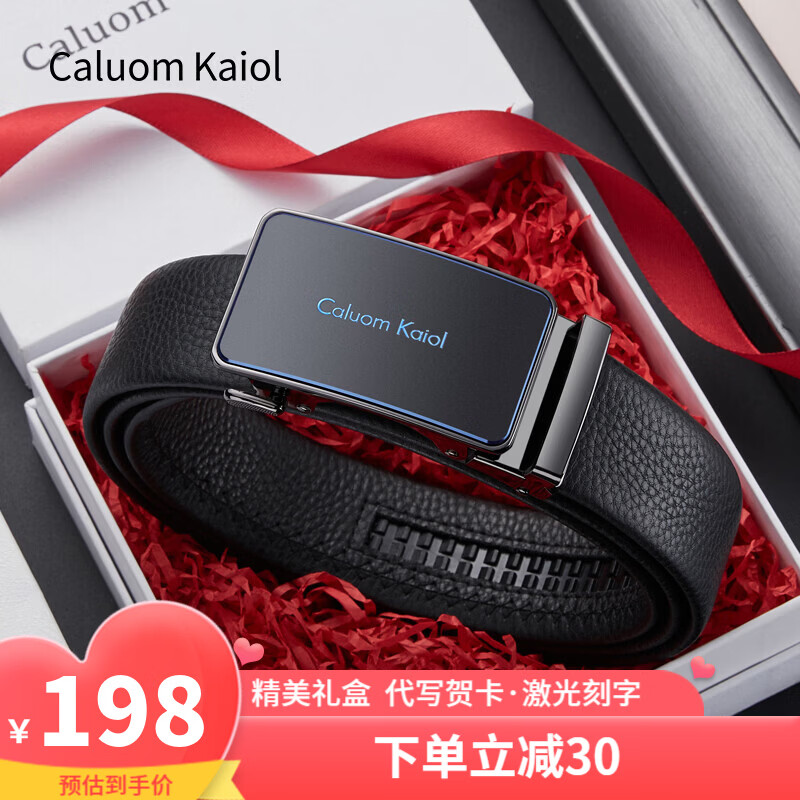 Caluom Kaiol品牌皮带男真皮男士腰带牛皮自动扣商务裤带生日礼物送男友老公 【专柜礼盒】8068E/外穿式/潮流蓝色 110cm -130cm默认随机(可修剪)需要其他尺码联系客服