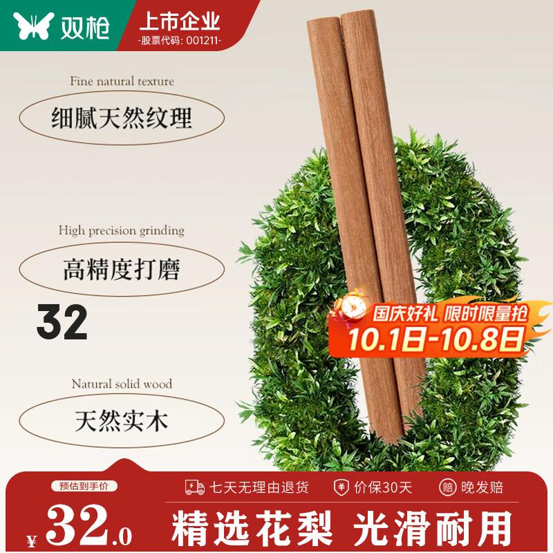 双枪暴富筷木筷子高档筷中式筷创意防霉无漆无蜡实木筷国潮筷 10双【花梨木筷】