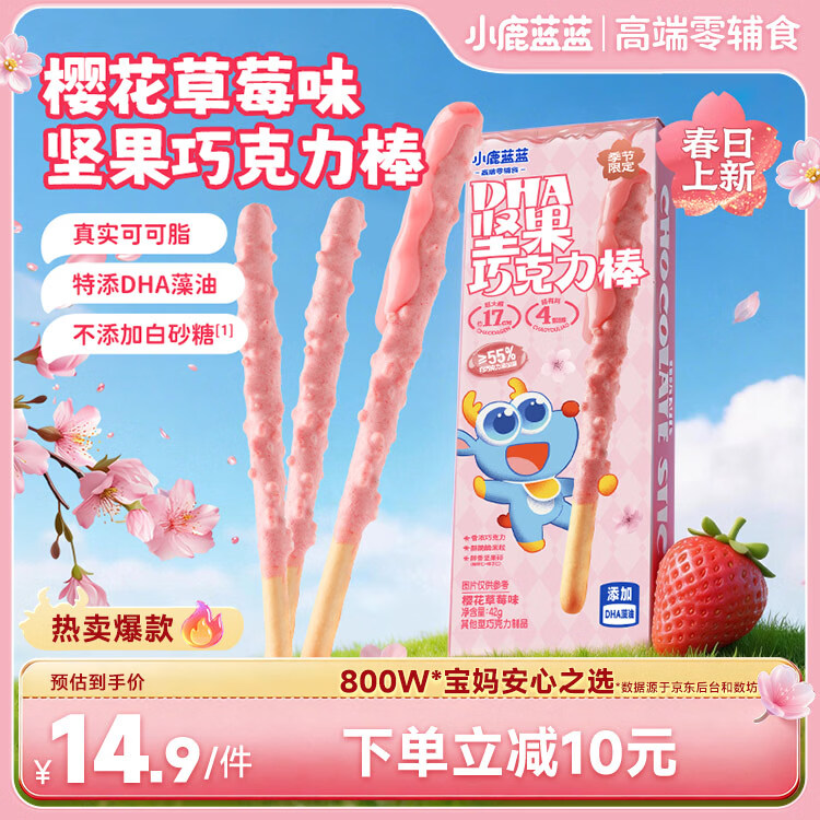 小鹿蓝蓝【春季限定】DHA坚果牛奶巧克力棒樱花草莓味宝宝儿童零食饼干42g