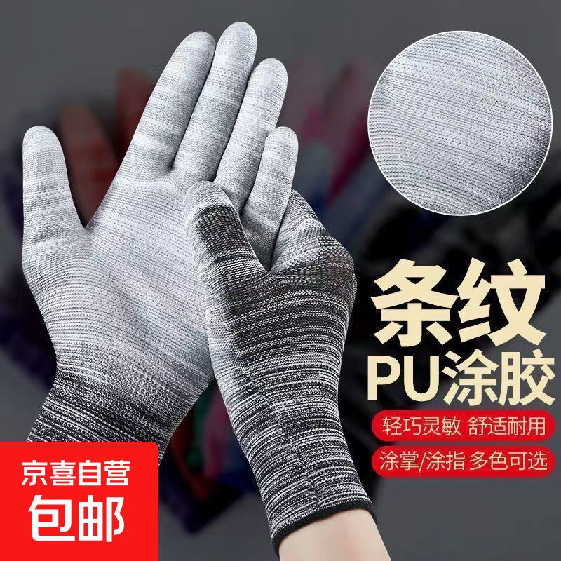 手套PU涂掌手套劳保防护耐磨工作加厚透气防滑建筑装修手套 【PU涂指涂掌手套】 -均码-随机颜色1双