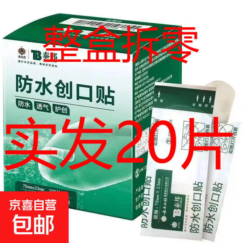 防水创可贴透气伤口耐磨止血应急方便创口贴100片家用 防水创口贴(20片)【整盒拆零发货】