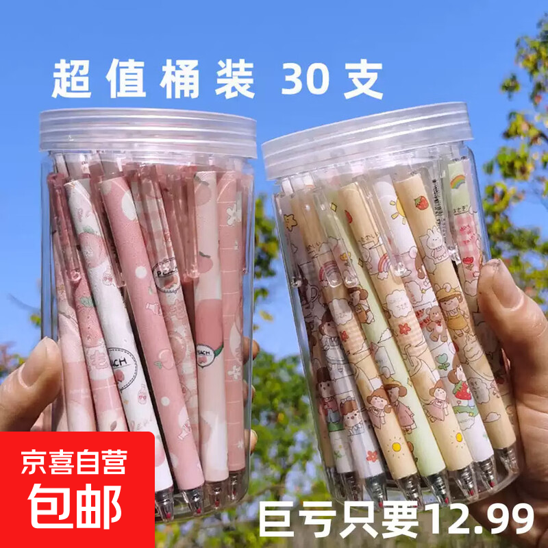 中性笔ins高颜值学生可爱按动中性笔0.5考试刷题笔按动式网红 卡通中性笔2支【活动专项】