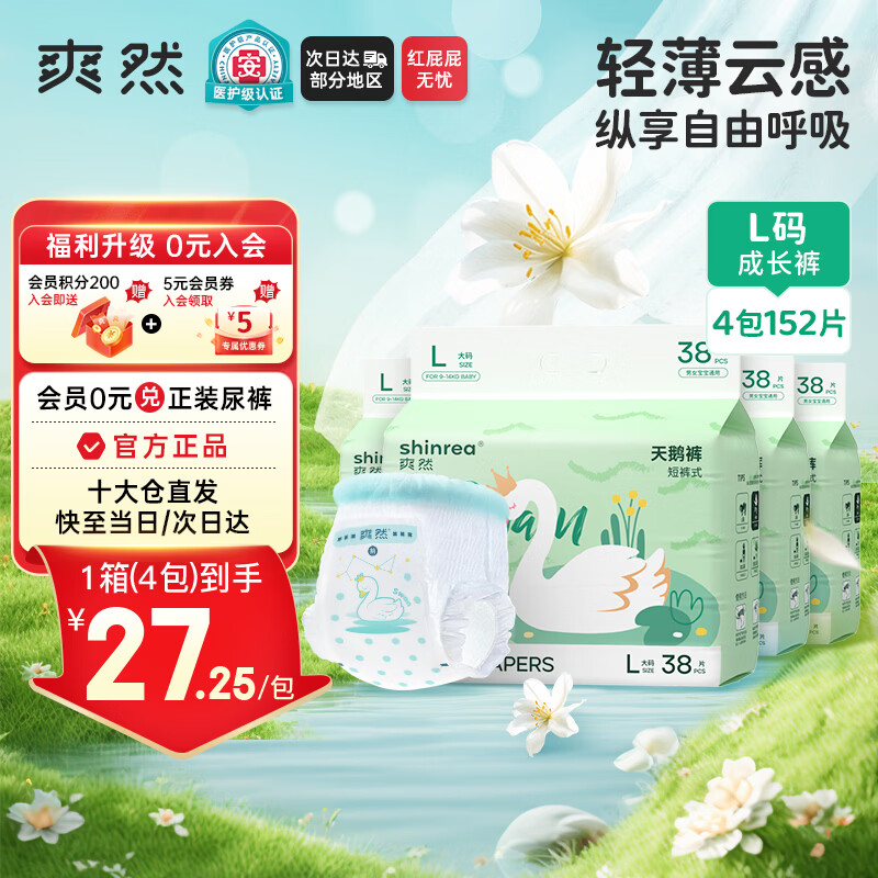 爽然 天鹅拉拉裤L152片轻薄超柔【品牌直供 安心品质】