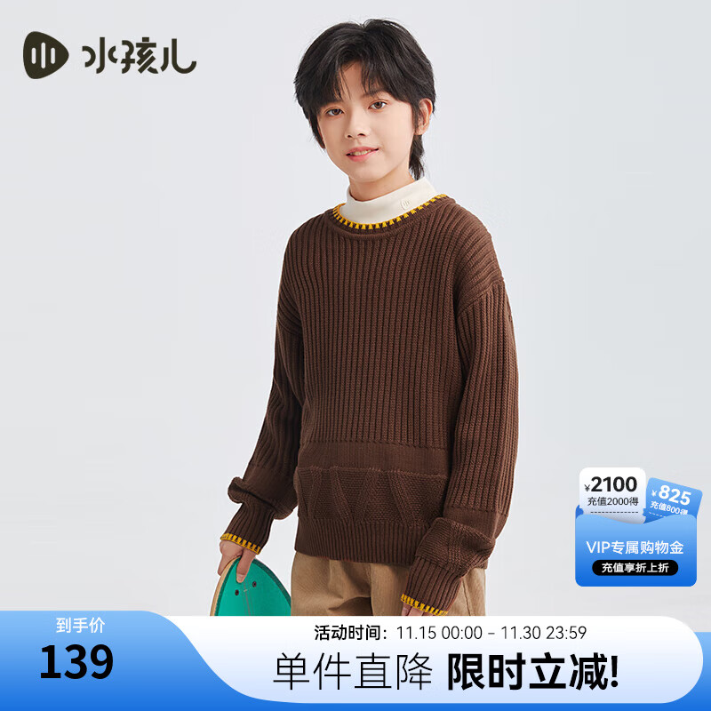 水孩儿(SOUHAIT)童装男童女童毛衣冬季新款儿童针织线衣百搭上衣 摩卡棕SHSDND01CW634K29 170
