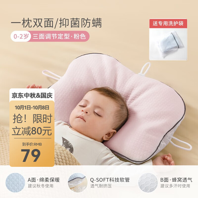 贝肽斯婴儿枕头0-1岁定型枕6个月以上新生幼儿宝宝睡觉枕头 粉色【TPE软管,分区定型】