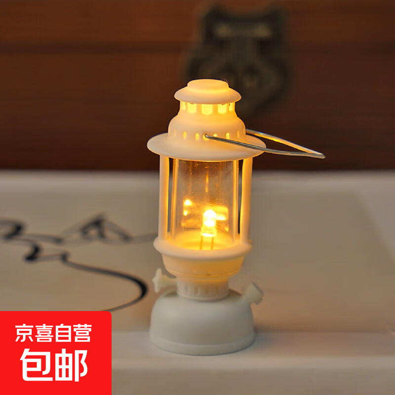 迷你复古仿真小夜灯led电子蜡烛灯手提风灯装饰氛围挂件桌面摆件 小宫灯造型-白色-4*6.5cm-1个 复古手提灯