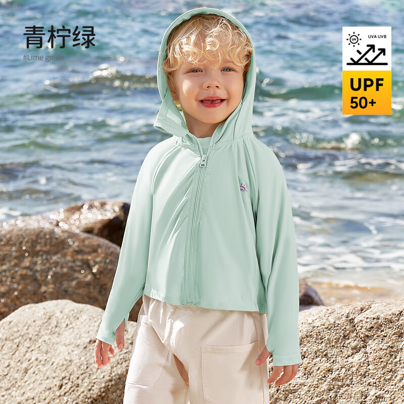 欧孕儿童防晒衣男童女童UPF50+宝宝冰丝防晒服婴儿A类夏季薄 青柠绿 90 码