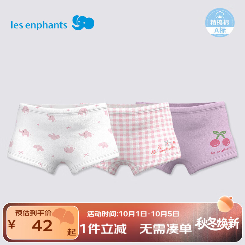 丽婴房【5A抗菌】儿童内裤5A抗菌内裤A类平角内裤全棉内裤3条女童内裤 粉色樱桃-女童(5A抗菌纯棉) 3条 150 cm