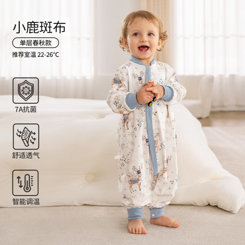 欧孕(OUYUN)听梦婴儿睡袋宝宝春春夏款儿童恒温睡袋四季通用防踢被子神器新 小鹿斑布【推荐22-26℃】春秋款 80码-身高55-80年龄段3-18个月