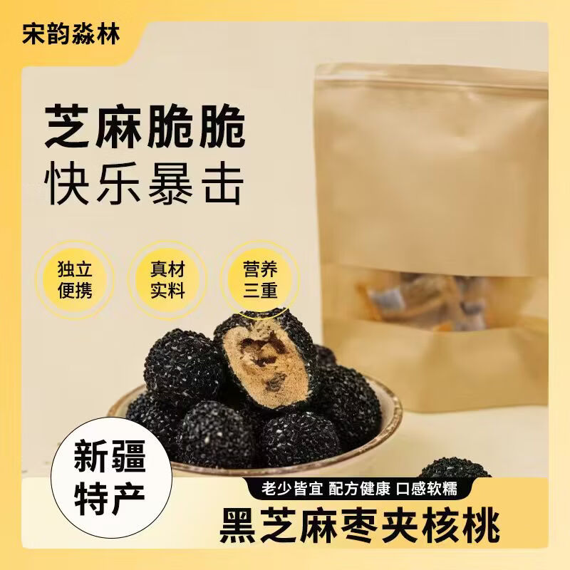 宋韵淼林新疆特产 黑芝麻枣夹核桃 黑芝麻丸早餐即食老少皆可独立包装零食 【买一送一】到手120克*2袋