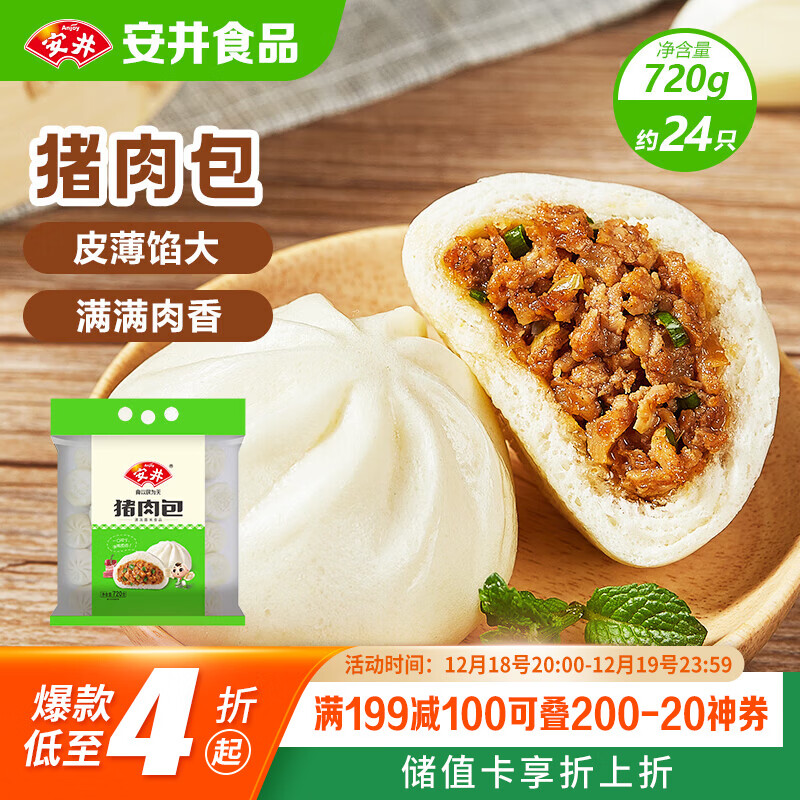 安井猪肉包 720g /袋 约24个 家庭装包子早餐 速冻面点早点半成品