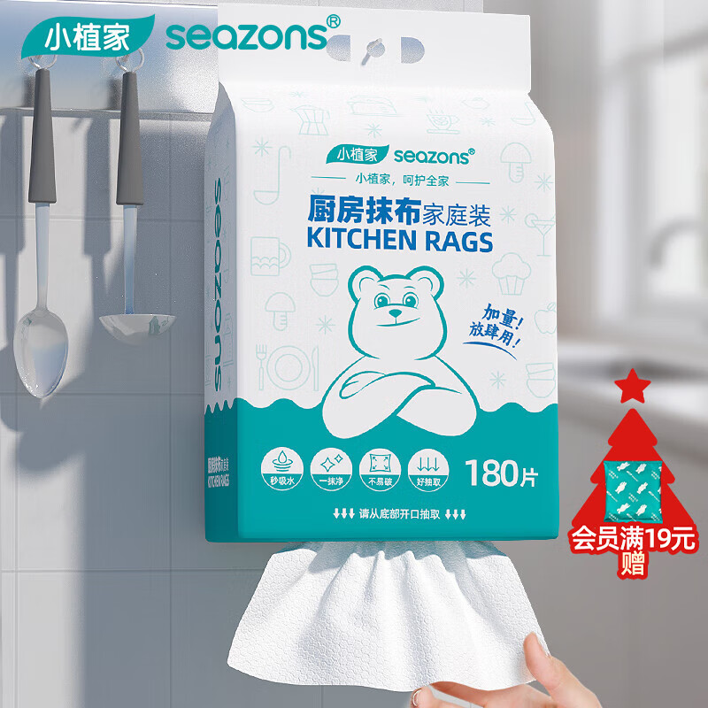 小植家一次性懒人抹布干湿两用吸油吸水洗碗布加厚加大厨房纸巾 悬挂抹布180片