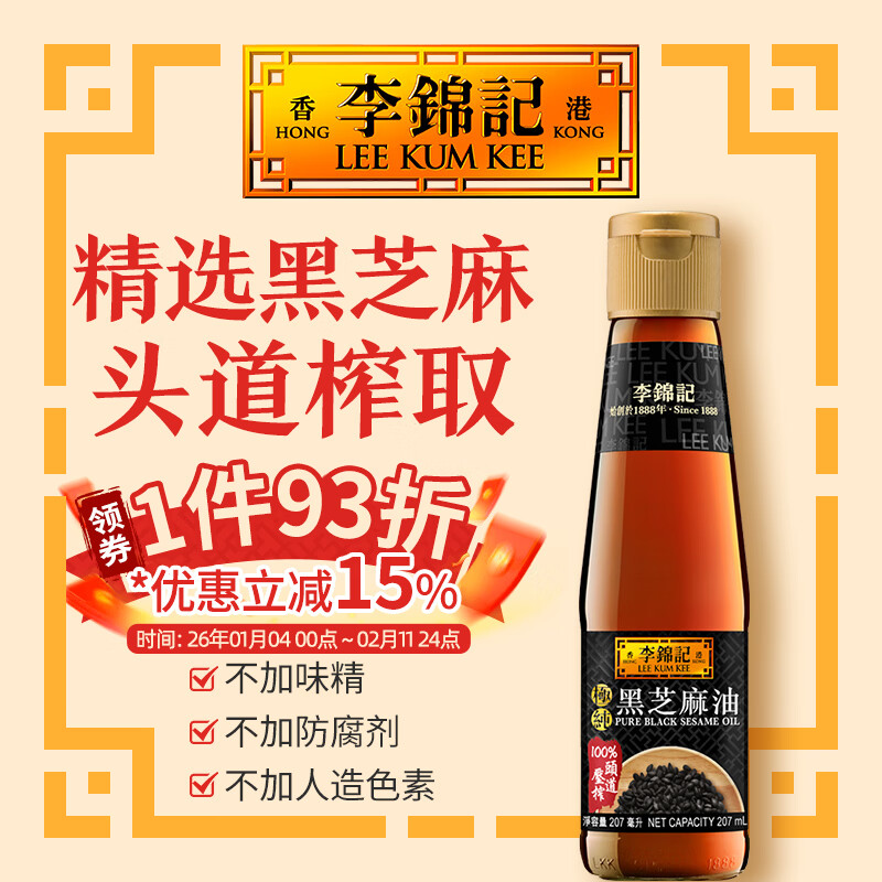 李锦记(LEE KUM KEE)极纯黑芝麻油 港版零添加纯正天然香油凉拌家用麻油调味油葱油 极纯黑芝麻油 207ml