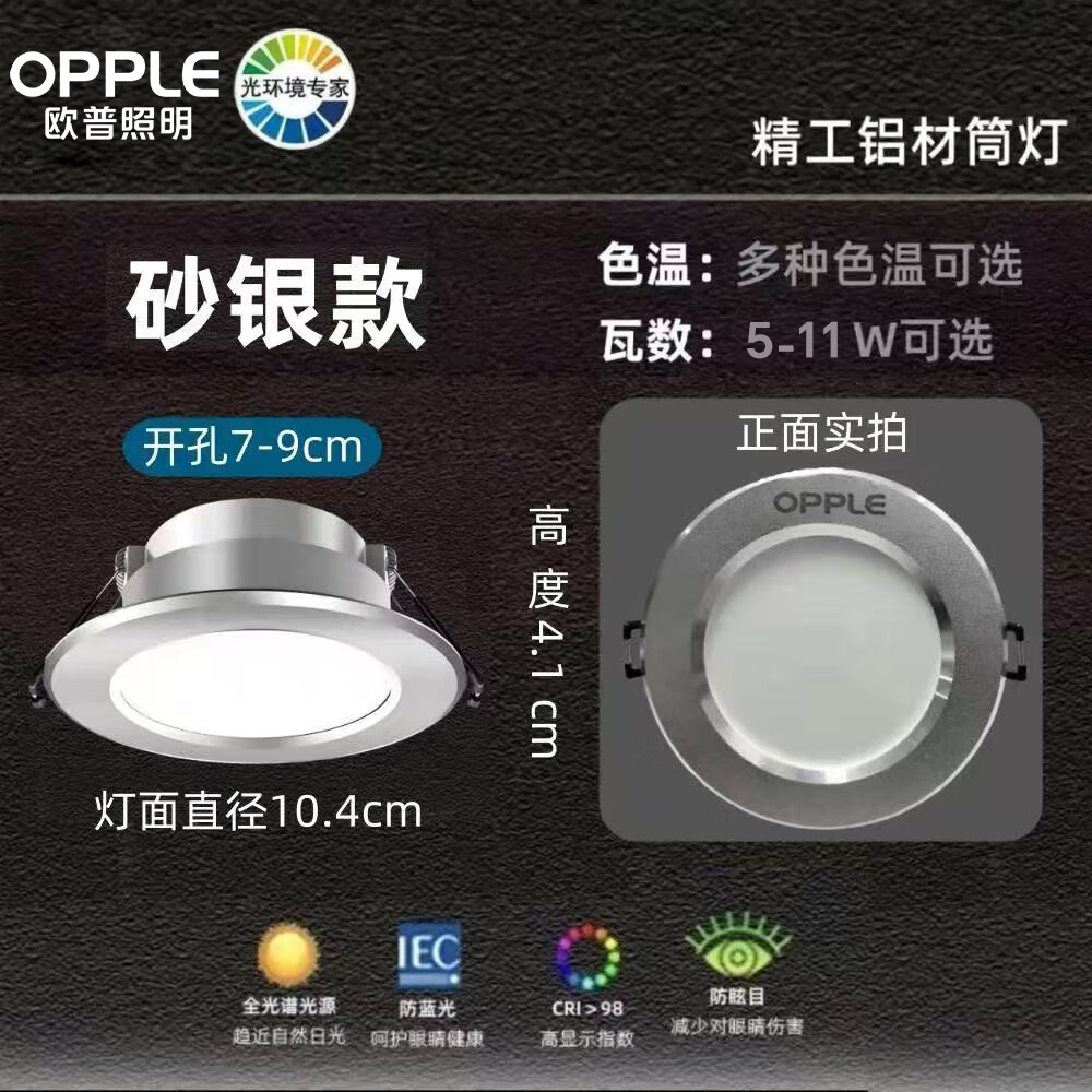 欧普照明LED筒灯嵌入式吊顶防眩式客厅家用灯桶灯开孔7.5 砂银-[白光]-适用开孔7-9CM 5W