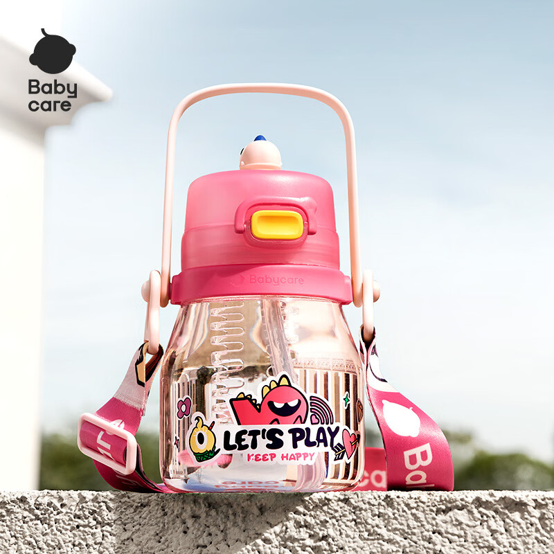 babycare大肚吸管水杯双饮运动外出便携儿童水杯大容量男女水壶t 维尔粉500ml