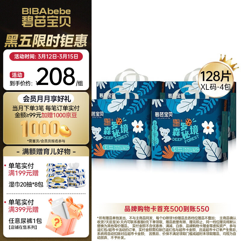 碧芭宝贝拉拉裤丛林物语之森罗秘境婴儿成长裤薄透干爽夏季尿不湿训练裤 箱装XL码-32片*4包