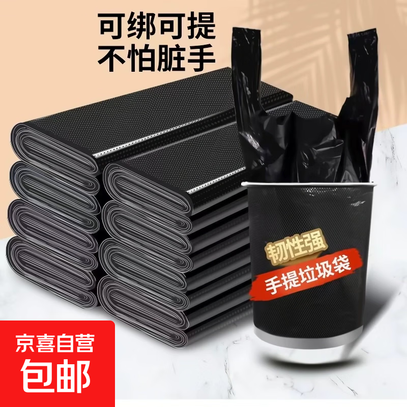 农资园艺垃圾袋手提式加厚大号黑色塑料袋实惠装架类配件园林资材 手提垃圾袋-46*60-20只/卷-黑色 2卷