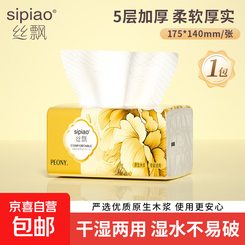 【官方直降】丝飘抽纸大尺寸加厚5层整箱卫生纸家用卫生纸纸巾 【结香系列】 5层 60抽*1包