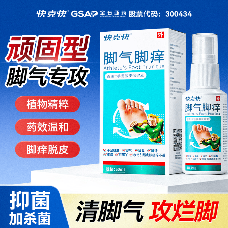 快克快脚气喷剂脚气止痒脱皮烂脚丫真菌感染喷雾(发货特效)脚痒非药喷剂 一瓶装