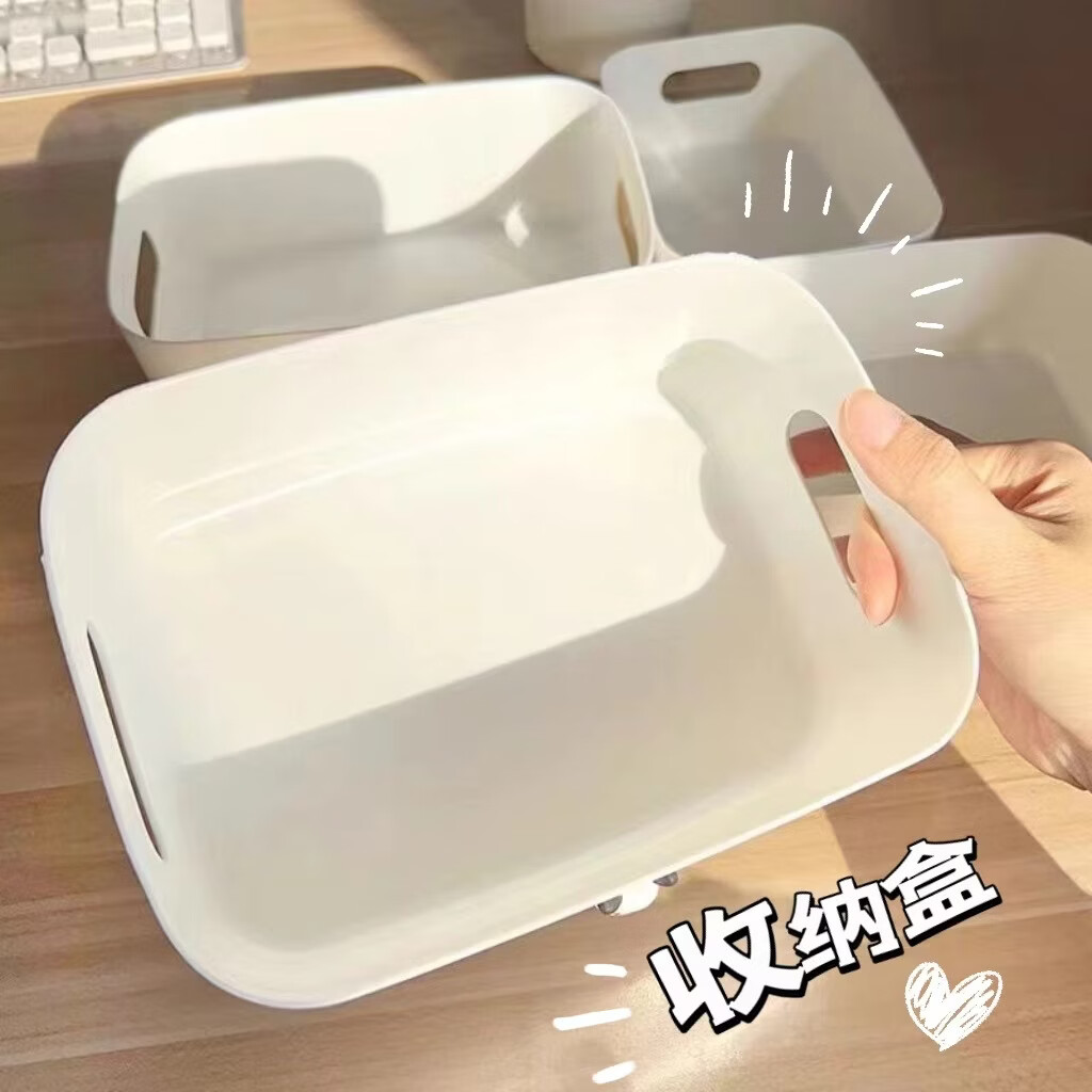 桌面收纳盒化妆品杂物零食置物筐长方形整理小盒子家用塑料储物盒 小白盒【1个】20x14x7cm