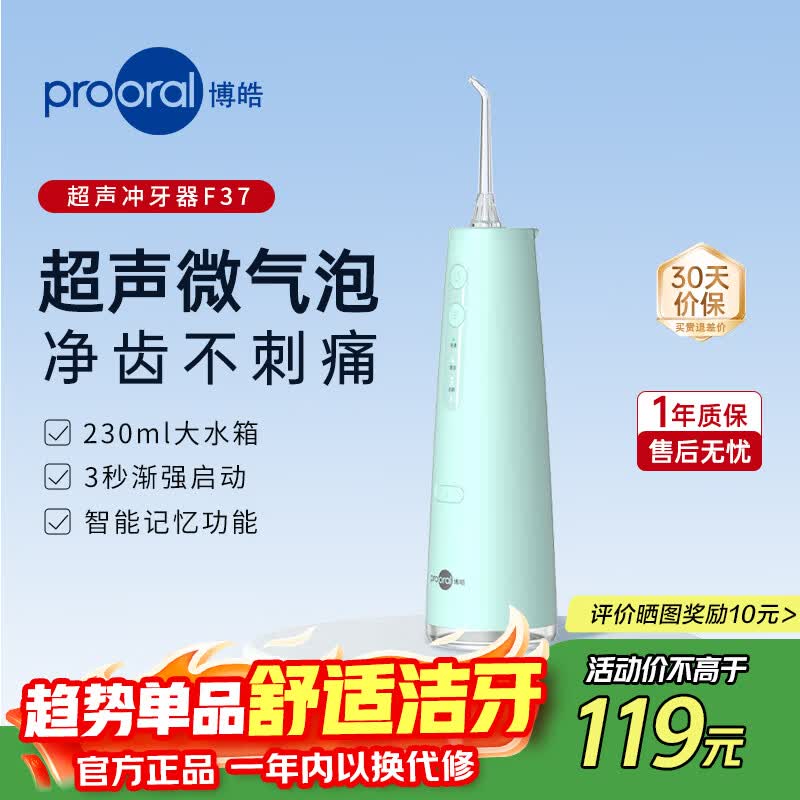 博皓(prooral)电动冲牙器便携式家用洗牙器牙齿冲洗器水牙线正畸牙齿清洁牙垢去除工具牙缝口腔清洗器牙套洁牙机 静谧绿| 3种模式| 230ml水箱