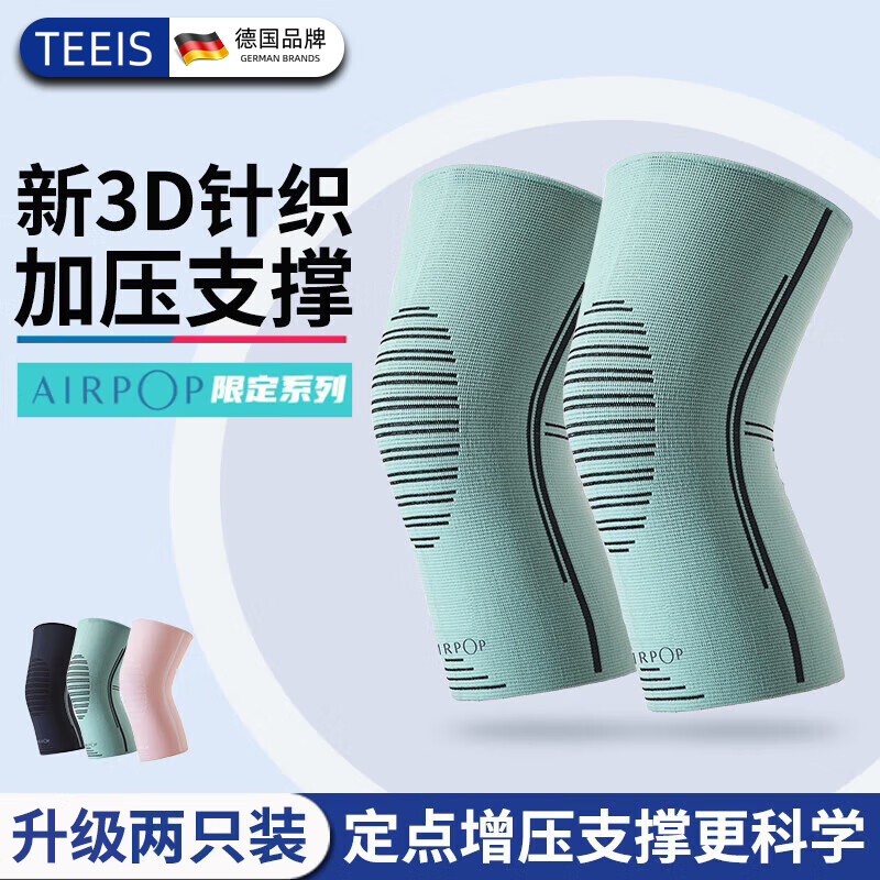 TEEIS德国护膝保暖老寒腿男女士专用膝盖运动半月板韧带髌骨登山羽毛球 薄荷绿 L码丨 适合150-180斤 丨两只装