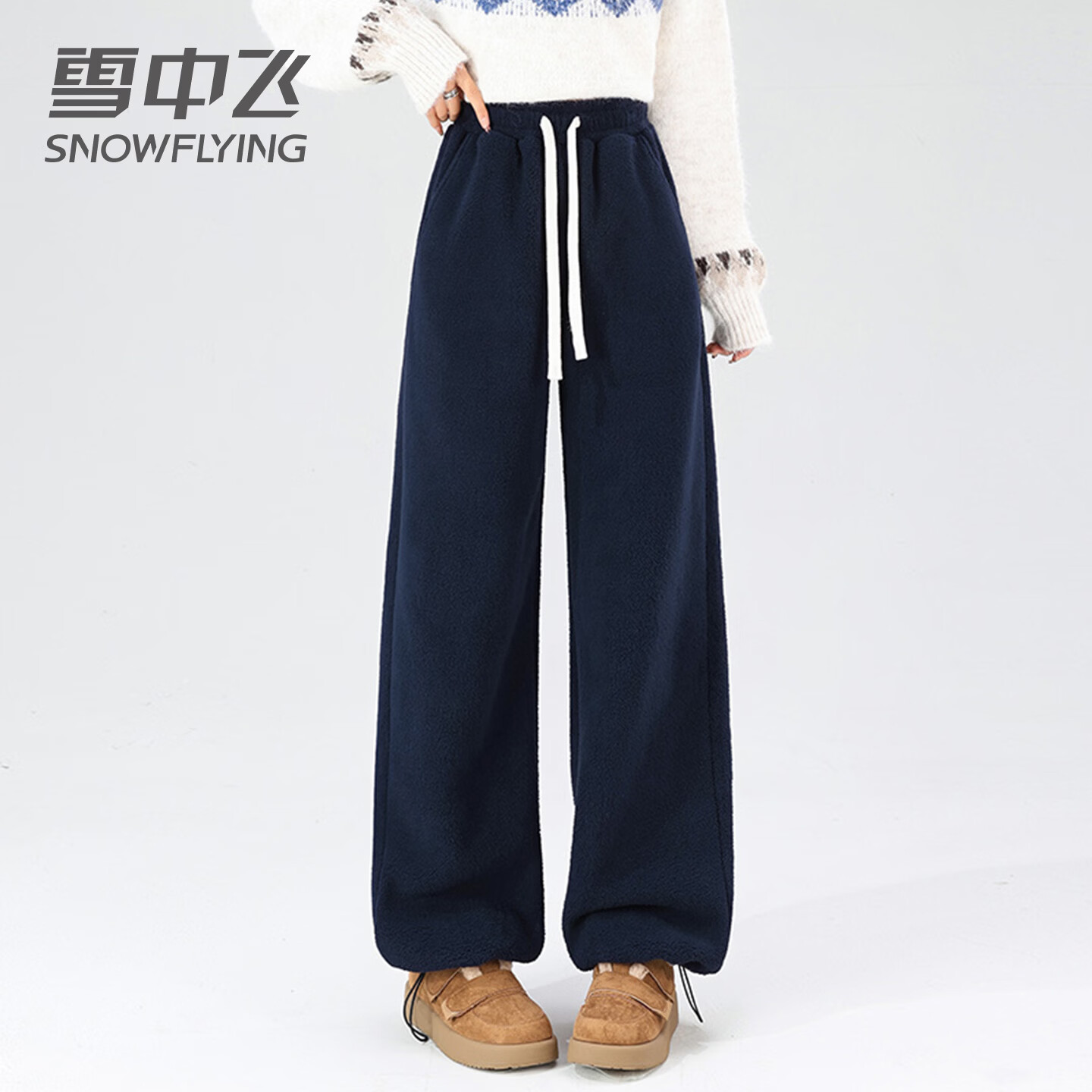 雪中飞抓绒休闲裤子女冬季加绒2026年新款高腰外穿加厚保暖摇粒绒阔腿裤 藏青色 S155/62A 85-100斤