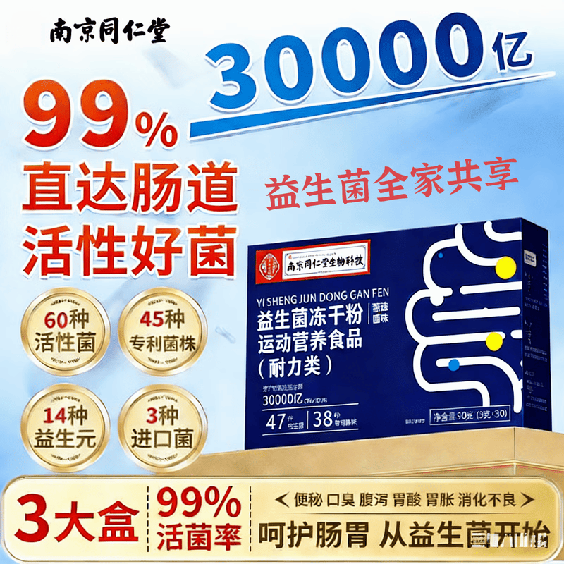 同仁堂益生菌冻干粉30000亿活性益生菌可搭调理肠胃 益生菌冻干粉 30条*1罐