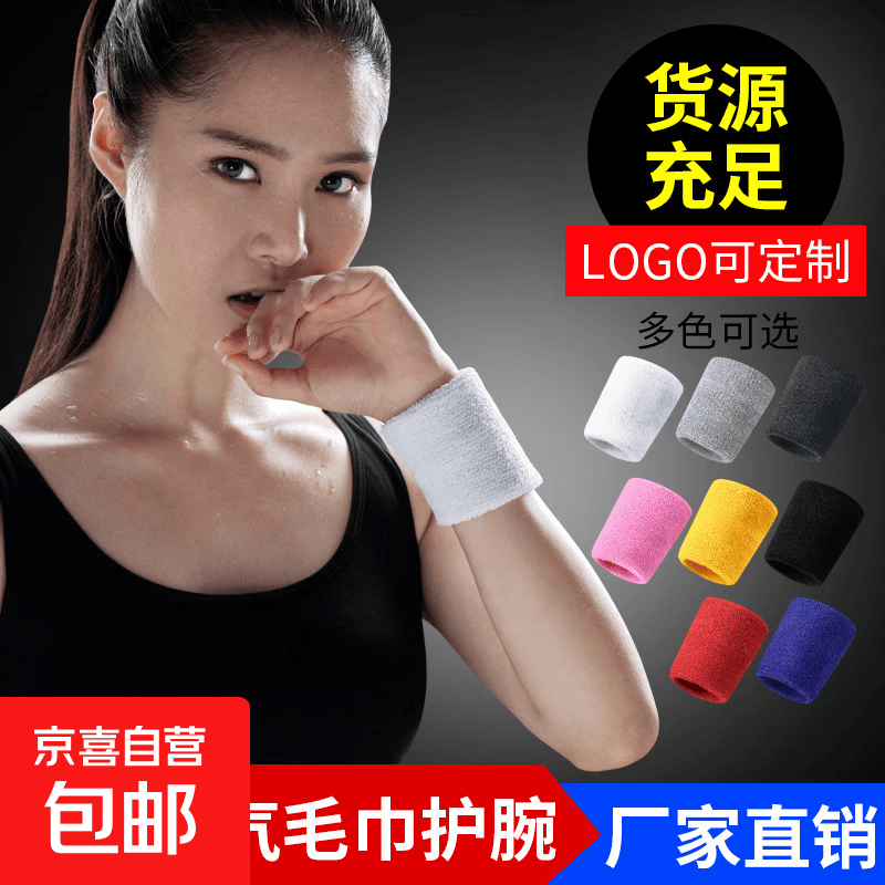 运动护腕吸汗毛巾护腕运动健美健身跑步篮球护腕透气棉运动护手腕 黑色【护腕】 8*10cm