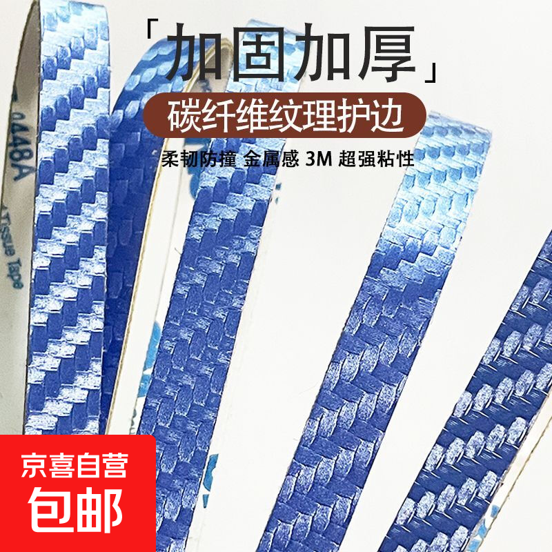 乒乓球拍PU碳纤维纹理护边条亚光防撞防磕碰超级耐用自粘底板保护 【蓝色8mm】 【三条】