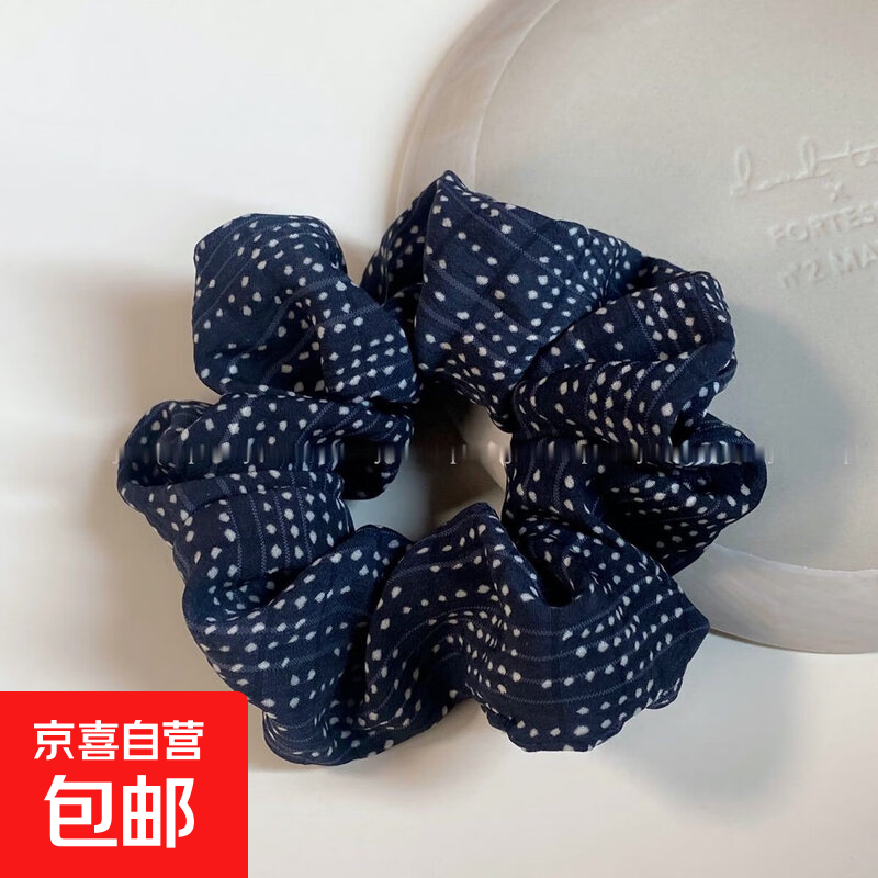 藏青色圆点点大肠发圈洋气显白高级小众手作发绳发圈弹力儿童发圈 藏青-#点点1个