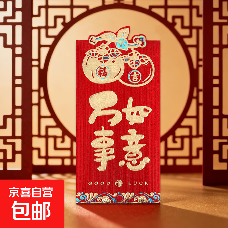 新款磨砂异形利是封新年结婚红包喜字大吉大利烫金大号搬家满月利是封袋磨砂高级宣纸红包异形大号 万事如意12个