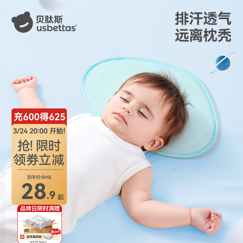 贝肽斯云片枕婴儿0-1岁枕头新生儿童宝宝透气吸汗散热枕头 维尔斯特粉【31×22cm】