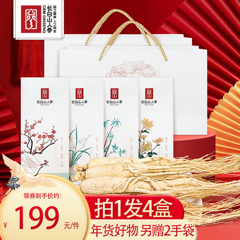 长白山人参活性参东北吉林特产人参 富含人参皂苷泡酒煲汤送亲友年货伴手礼 拍1发4盒【冻干. 活性参】