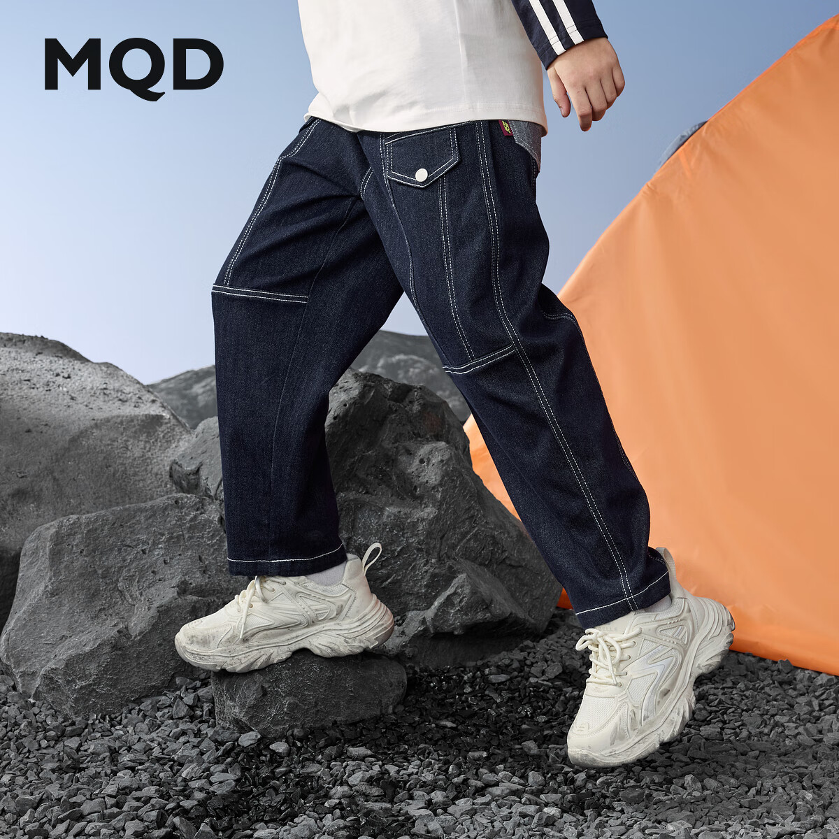 马骑顿(MQD)男童25秋季新款学院风街潮大口袋工装风牛仔裤 原牛仔色 150