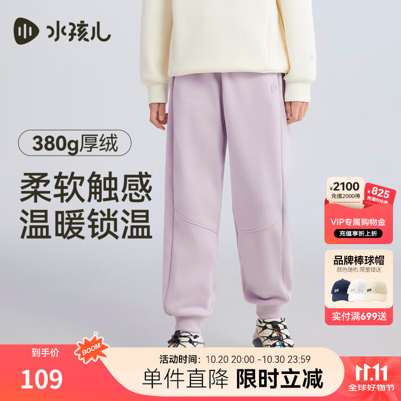 水孩儿(SOUHAIT)童装男童女童加绒厚裤子2025冬季新款儿童一体绒长裤百搭休闲裤 甜紫色SHTDND05CK793V31 110
